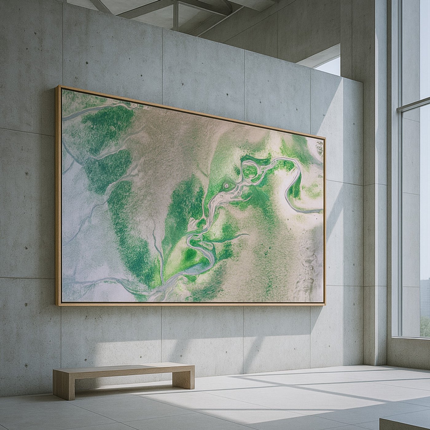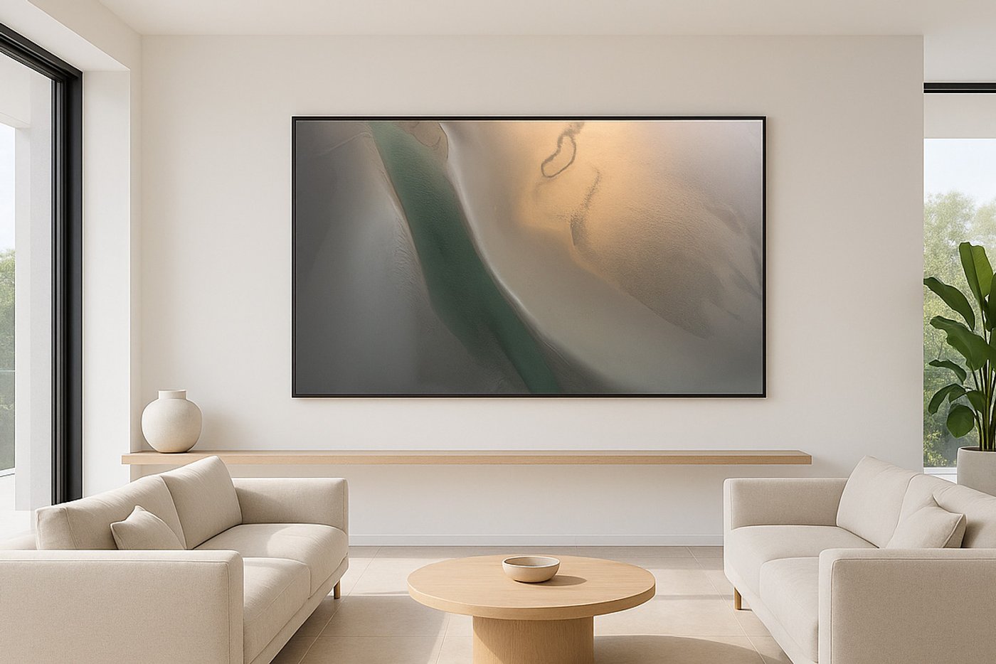 Abstract yet entirely real, Eireann invites a metaphoric read from above.Sand, sea and light become symbols of memory and veins of belonging.