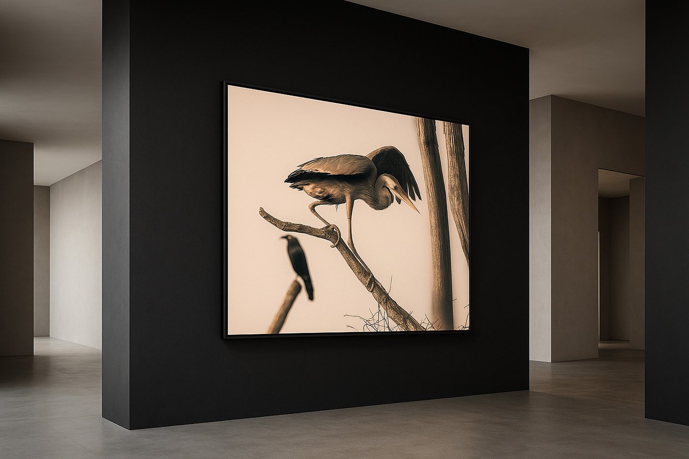 Mystic Birds is a collection of 30 large-format photographic panels portraying Great Blue Herons in their secluded nesting grounds.