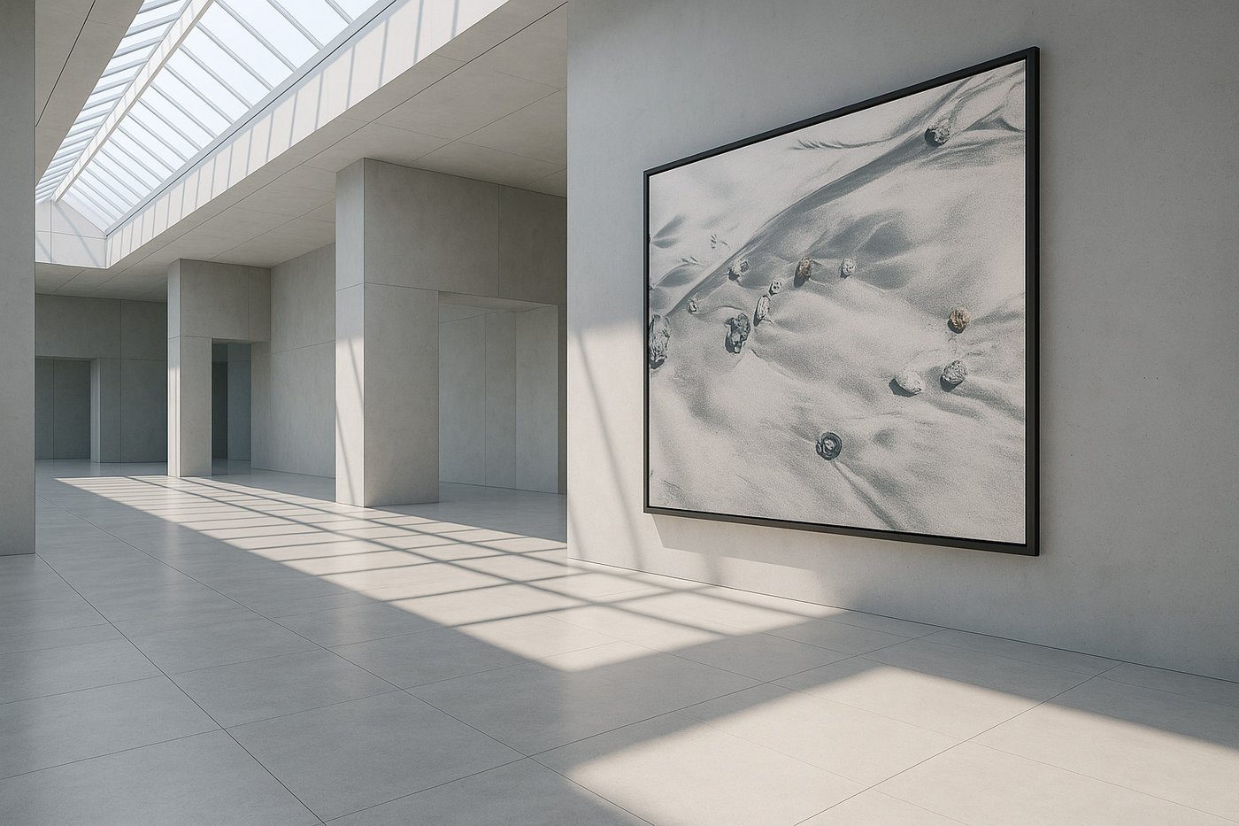 These macro compositions reveal complex designs, perfect stories you have to pause on to see. They live in the sand for a moment, then the tide rewrites everything. Meaning is never fixed. Nothing can be possessed, or it dies. But so much can be created through the quiet alchemy beneath our feet. Once oversized in these photographic panels, the smallest grains become a stage where water, wind, and time draw, erase, and draw again. Highly abstract, these images speak like distant forests and bloodstreams, like deep interconnectedness made visible. Soul, rivers, roots, wings, even human gestures. Nature uses a kind of drawing language to express higher thoughts, with no explanation, just a hint or a thought left behind for us to inhale. They remain fluid to the eye, the mind, the spirit, offering space for reflection with no need to resolve anything. Like a song, they fill you for an instant, then vanish, yet something stays in you for a long time. This body of work invites a metaphoric reading of the natural world, and of ourselves, in the same tide.